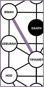 Pfad: 17 von Binah nach Tiphareth. Crowley schreibt: Diese Verbindung ist ein Symbol der Inspiration (Binah), die auf die verhüllte Figur hinabsteigt (Tiphareth), die einen Propheten darstellt, der die Vereinigung des Königs mit der Königin bewirkt. (Buch Thoth, S. 88)