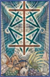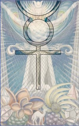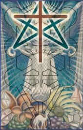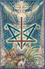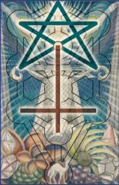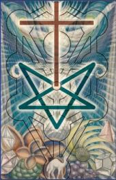 Fassen wir zusammen: Die an der Achse Chesed-Geburah gespiegelten Symbole Pentagramm und Kreuz verkörpern die Idee dessen, was wir unser ineinander verschränktes geistiges und materielles Weltbild nennen. Es ist die Urprägeform oder der schöpferische Topf, aus dem wir die Welt nach unserer Vorstellung nachbilden. Die obere Hälfte sendet den geheimnisvollen Ruf aus den Wassern des Unbewussten aus, die Sehnsucht nach Gott, die uns zur Schöpfung antreibt, während der untere Teil die Libido verkörpert, der instinktive Wunsch, über die sexuelle Ekstase die materielle Gebundenheit zu sprengen. Wo Crowley die Wasser des Abyssos durch einen sexuellen Akt mit spirituellem Orgasmus zu überwinden sucht (für seinen Orden Argenteum Astrum war Pfad 13 die Startbahn zum Ipsissimus über den Magister Templi), erlöst Parzival den sündigen Amfortas mit der heilenden, die Wunde schließenden Berührung des Schwerts.
