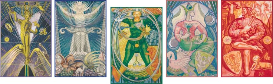 Götter: Chomse, Gott des Mondes, Artemis, der jungfräuliche Mond, Hekate, der böse Mond, Diana, die Jägerin. Artemis, Isis und Nuit sind Symbole höchster Einweihung und repräsentieren die reine Idee als göttlicher Funke vor der materiellen Verwirklichung.