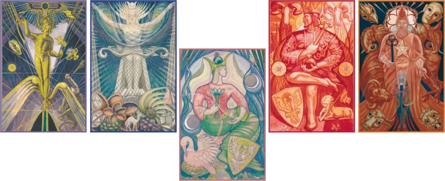 Was zeigt uns dieses Beispiel im Falle Crowley? Wenn wir seinen Spruch akzeptieren, dass der Narr sozusagen alle Karten in sich beinhaltet, die sich als verschiedene Stationen auf seinem Lebensweg hintereinander entfalten, müssen wir auch umgekehrt hinnehmen, dass beispielsweise Kaiserin oder Hohepriesterin oder auch die Karte Lust, die ebenfalls eine Materialisation kompensierter negativer Gefühle darstellt, Teile des Gesamtwesens des Narren alias Aleister Crowley sind. Die vergewaltigte Scharlachhure aus der Mischung Hohepriesterin – Kaiserin– Lust ist sozusagen die aggressive Antwort auf das prüde mütterliche Sektenbild.11 Während er seine Projektion bewusst nicht durchschaut, dirigiert er sie unbewusst sehr gut: Es handelt sich um die schöpferische Kreation seiner zerstörerischen Neigungen, die von seinem eigenen Dämon so zurechtgeformt und zurechtgestutzt worden sind, dass sie ihn nicht mehr bedrohen können. Der Preis bedingt natürlich das Opfer der inneren Mutter, die nicht erlöst werden kann. Das eine hängt direkt mit dem anderen zusammen, denn seine Scarlet Woman hätte sich nicht entwickeln können, wenn er das Trauma mit seiner Mutter aufgearbeitet hätte.12 Deshalb verkörpern die Scharlachfrauen Crowleys dunkle Kraft, und die Tatsache, dass er in jeder Frauenbeziehung die innere Göttin sucht, die er äußerlich völlig zu beherrschen und in seinen Bann zu ziehen trachtet, zeigt, dass er in seinen Frauen eigentlich seine eigenen destruktiven Energien, die nach innen gerichtet waren, bearbeitete.