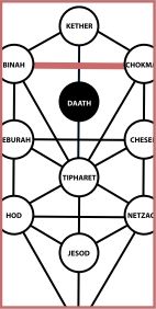 Genau in der Mitte wird diese Verbindung von Pfad 13 (Gimel) gekreuzt, der von Tiphareth nach Kether aufsteigt. Im Gegensatz zur Hohepriesterin, die eine senkrechte Verbindung zwischen Gott und Mensch quer durch den Abyssos (Kether – Tiphareth) darstellt, beherrscht die Kaiserin die horizontale Achse zwischen Mann und Frau, Vater und Mutter, Schwefel und Salz (Chokmah – Binah). Deshalb verhält sie sich im Vergleich zu ihrer spirituelleren Schwester, die den göttlichen Geist wie seinerseits Jesus oder Prometheus zu den Menschen hinunterbringen will, auch eher realitätsbezogen und praktisch, was sie aber nicht zum erdverbundenen »Bauerntrampel« werden lässt, denn Daleth liegt auf der Achse Chokmah – Binah oberhalb der Grenze zum Menschlichen. Crowley schreibt: Daleth ist der Pfad, der den Vater mit der Mutter vereinigt, einer der drei Pfade, die oberhalb des Abyssos sind (…) Mit anderen Worten, es gibt eine Fortdauer des Lebens, eine Vererbung des Blutes, die alle Formen der Natur miteinander verbindet. Es gibt keinen Bruch zwischen Licht und Dunkelheit. Natura non facit saltum. Wenn diese Betrachtungen in ihrer Ganzheit verstanden würden, so könnte es möglich werden, die Quantentheorie mit den elektromagnetischen Gleichungen in Einklang zu bringen.15