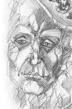 Neugierig ging ich auf ihn zu. Als sich sein Kopf langsam in meine Richtung drehte, erschrak ich bis ins Mark, denn ich schaute in ein Gesicht, das durch die Gezeiten hinweg fast selbst zu Stein geworden war. Ich entdeckte Furchen und Narben, die nur die durchlittenen Qualen unzähliger Existenzen hineingemeißelt haben konnten. Als er die Furcht in meinem Blick gewahrte, verzogen sich seine Lippen zu einem leichten Lächeln, das mir erschien, als ob eine Maske aus Pappmaché in einer Presse auf eine freundliche Form zurechtgestutzt worden war. Das einzige Erbauliche, das mir in diesem harten Antlitz auffiel, waren die hellen kristallklaren Augen, die mir aus tiefen Höhlen entgegenleuchteten – und mit einem Schlag wusste ich, wer vor mir saß.