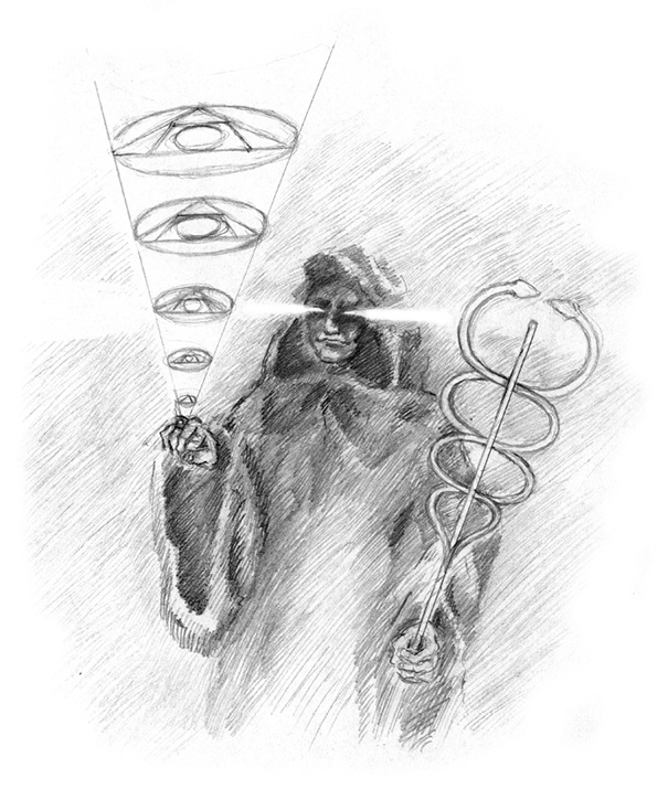 „Noch etwas! Die Alpträume der Vergangenheit werden im Steinbock konserviert. Damals, im Zeichen des Saturns, begegnete dir die Schwarze Isis schon einmal im Gewand der Schlange, doch was dort noch naiv und unschuldig aus deinem Unbewussten strömte, dem gilt es diesmal in deiner ganzen Mannhaftigkeit zu begegnen.“ Seine Hand wies auf die dunkle Öffnung unter mir. „Magst du einen Blick in deine Zukunft werfen? Interessiert es dich, in welcher Gestalt sie dich erwarten wird?“