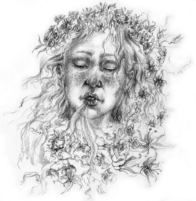 Tief in ihrer Seele leuchtete einen Moment der Paradiesgarten in einem Meer von Gänseblümchen, Lilien, weißen Nelken, Rosen, Veilchen und Gladiolen auf, und aus ihrem Mund strömte der berauschende Geruch von Jasmin und trunkenen Orchideen. Blühende Fliederbüsche spielten mit dem warmen Wind, deren schwer berankte Äste an die Gesten ägyptischer Königsschlangen erinnerten, die der Nachtgöttin huldigten.
