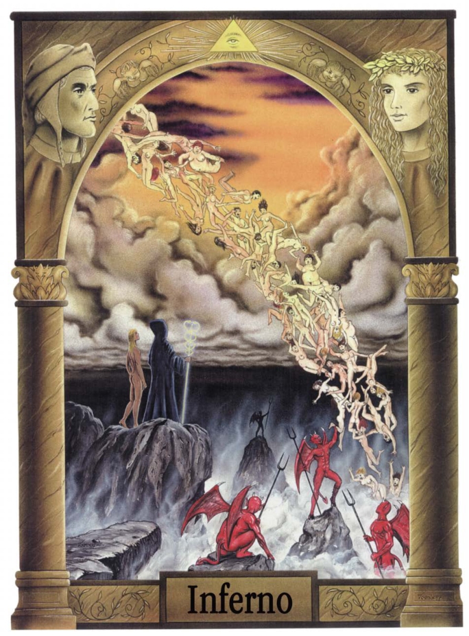 In dieser Hölle fühlst du dich in den Träumen der Ewigkeit gefangen, denn die Fische lassen das Interesse für das Ewige aufscheinen, während Saturn das Gefäß zur Aufnahme und Begrenzung dieses Ewigen darstellt. Doch dem saturnischen Bestreben, auf dem schwimmenden Boden der fischehaften Ebene eine konkrete Wirklichkeit zu errichten, ist kaum Erfolg beschieden, da sich letztere allem Sichtbaren entzieht, aus Angst, banal und faßbar zu werden, sobald sie Eigenart verkörpert oder konkrete Stellungnahme bezieht. Denn diese Hölle repräsentiert den unerlösten «Erlöser», der die Spiritualität, die er verfehlt, wenigstens als Bild in seinem persönlichen Erleben inszeniert. Da er seine eigene innere Leere damit verdrängt, schafft er ihr zumindest ein geeignetes Gefühlsreservat. Es ist dies das Träumen im Entschweben. Du entziehst deine Seele dem Alltag des Lebens, um allein und einsam in deinen Träumen die eigene Ewigkeit zu leben. Doch diese Flucht hat ihren Preis. Deine inneren Wünsche werden in die Sümpfe der Illusionen abgeschoben. Als Bilder der Sehnsucht müssen sie warten, bis ein Vorübergehender sie mit seinen Tränen erlöst.