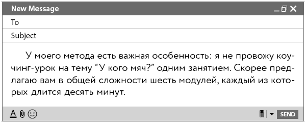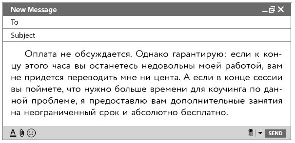 «Хм, верно. Он как будто наблюдал за мной и коллективом! – пораженно бормочет Мартин. – Назначу-ка встречу для десятиминутного разговора. Он обойдется мне чуть меньше чем в тысячу евро». Мартин указывает в новом письме желаемую дату и нажимает на «Отправить».
