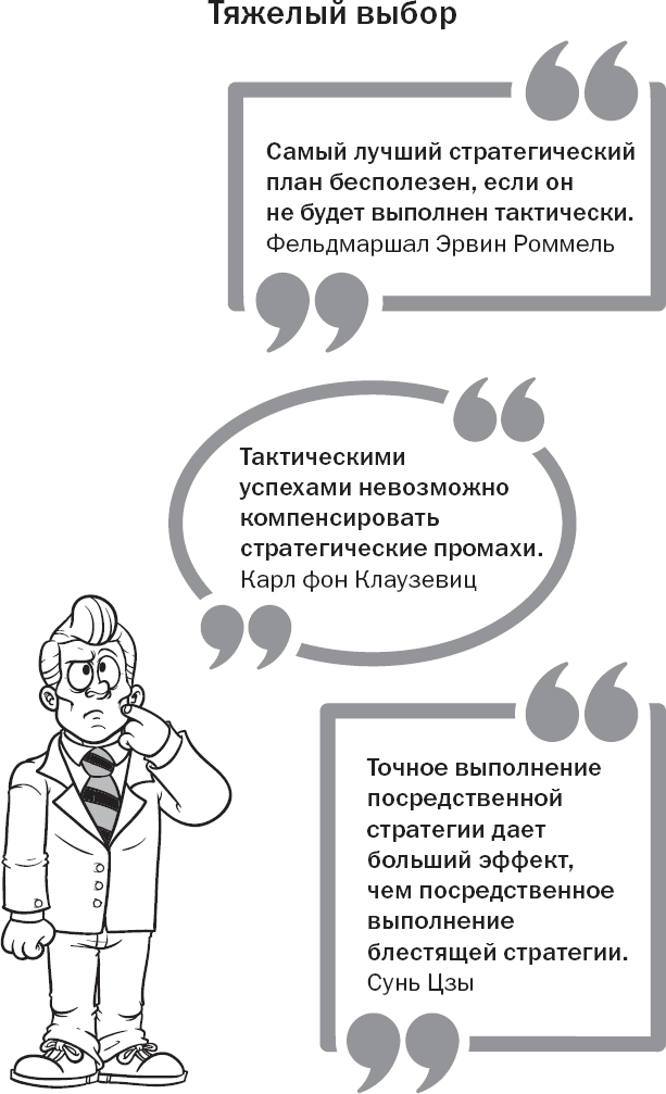 Обратите внимание: речь вовсе не идет об отказе от планирования вообще. Реальный план должен учитывать как «рельеф местности» (в нашем случае – рыночные условия и тенденции), так и возможность самостоятельных действий двигающихся «колонн» (сотрудников и подразделений компании), но с учетом целей «сражения» и критериев обеспечения «победы», которые мы с вами будем подробно обсуждать в главе 4.
