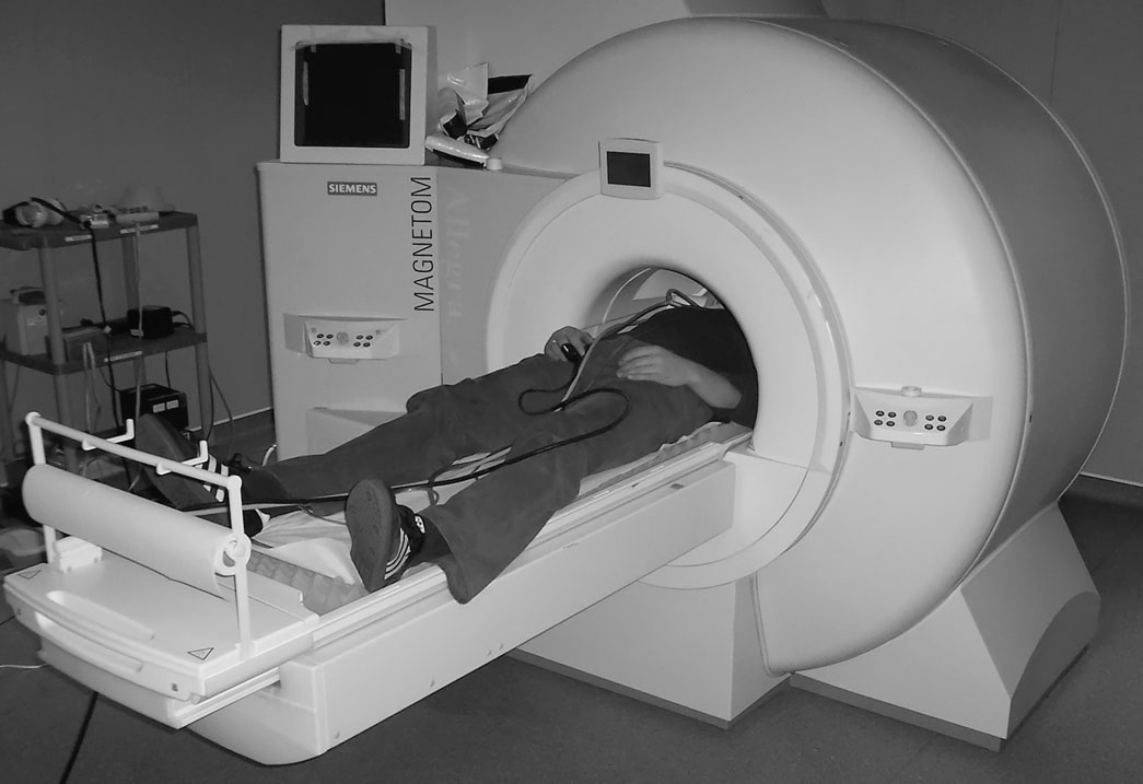 Рис. п.6. Испытуемый, лежащий внутри томографа для сканирования мозга
