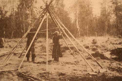 Полуоседлые таёжные группы эвенков жили в домах (1-5 домов), расположенных у реки, в лесу, в отдалении друг от друга.