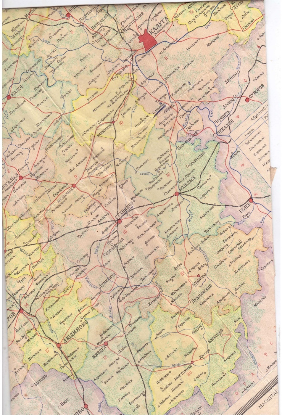 Сплошной лес сменился небольшими берёзовыми рощами, разбросанными по пригоркам вдоль оврагов. Миновали несколько крутых скользких спусков и подъёмов на маршруте Середейск – Сухиничи – Козельск. Потом я вычитал предположение Чивилихина, что так же, параллельно, шли татаро – монгольские конницы на Козельск по водоразделу верховьев Днепровского и Волжского речных бассейнов на территории сегодняшней Калужской области: между рекой Болвой, впадающей в Десну – Днепр, и рекой Жиздрой с притоками, несущей свои воды в Оку – Волгу.