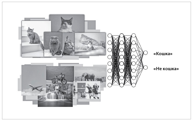 После такой тренировки сеть глубокого обучения, по сути, становится гигантским математическим уравнением; его можно протестировать на изображениях, которых она до этого не видела, и убедиться, что сеть путем «умозаключений» способна определить наличие или отсутствие в этих изображениях кошки.