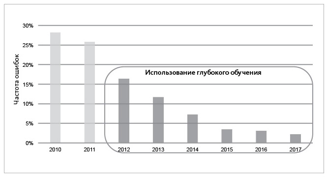 Использование глубокого обучения привело к существенному снижению частоты ошибок при распознавании объектов компьютерным зрением
