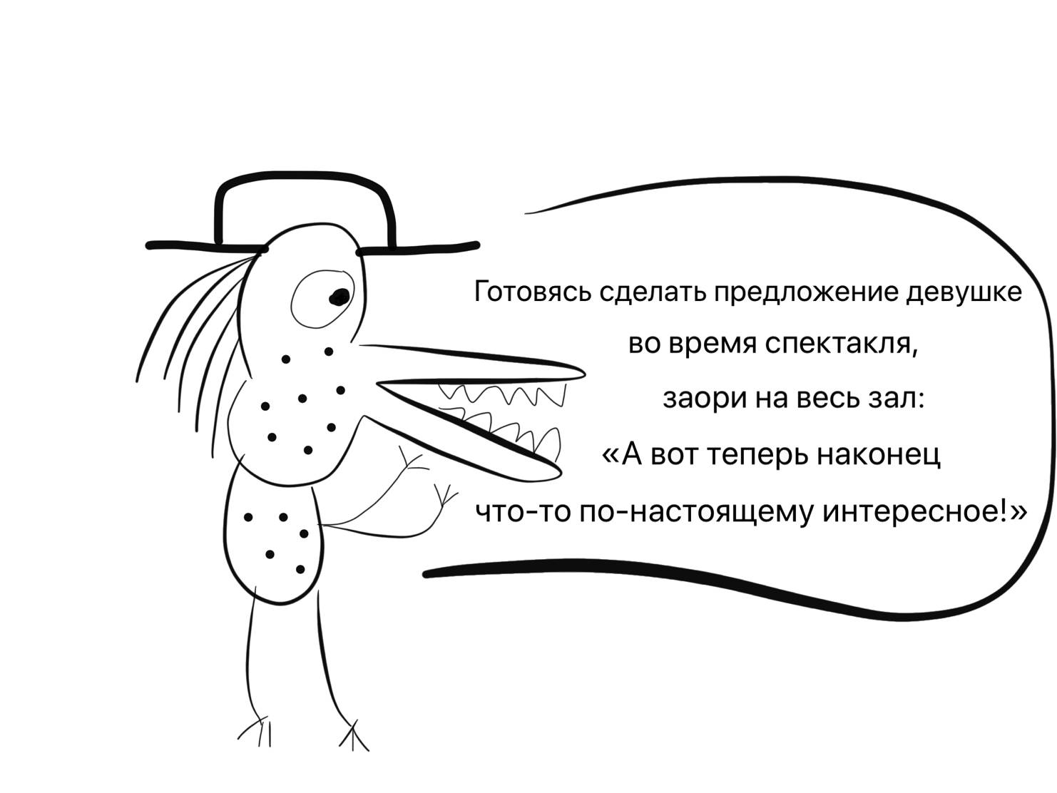 Дорогие друзь… Ой, простите… Дорогие наши любимые зрители! И снова в истории нашего театра пьеса, полностью состоящая из одного монолога. Но что это за монолог! Это настоящая история жизни, которая, возможно, кое-кому из вас откроет глаза на то, как… ну… как все происходит… в этой жизни… Короче, в сегодняшней нашей истории все истинно от точки до точки! Прислушайтесь! Реальный человеческий опыт! Действие!