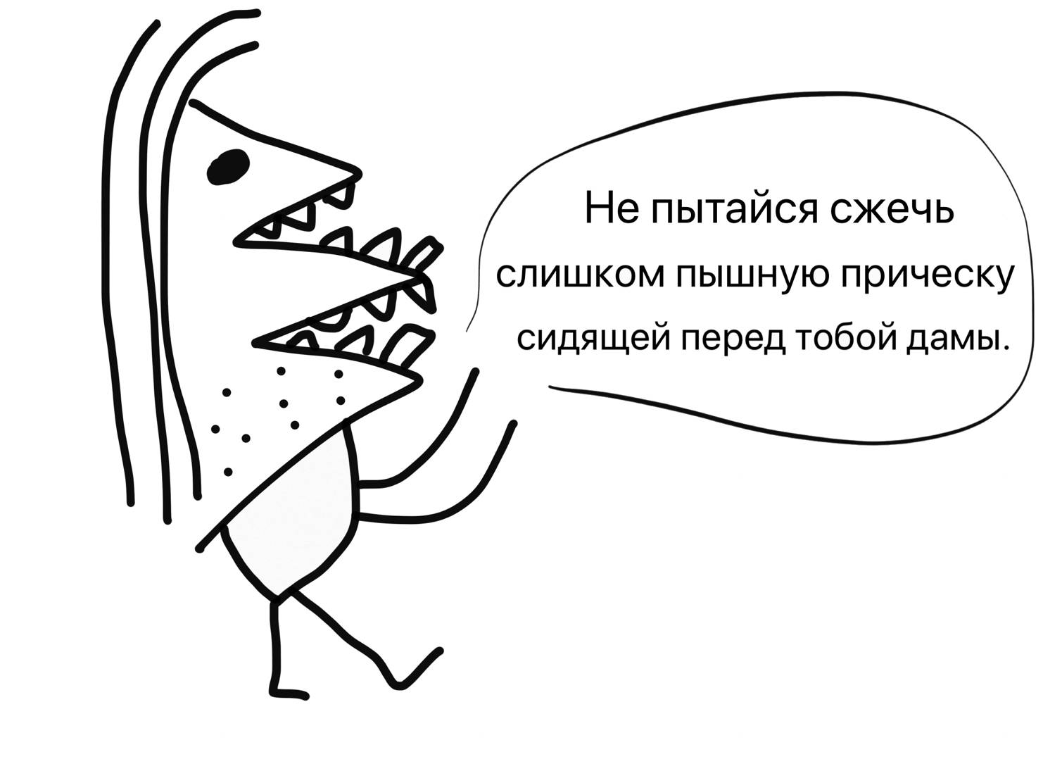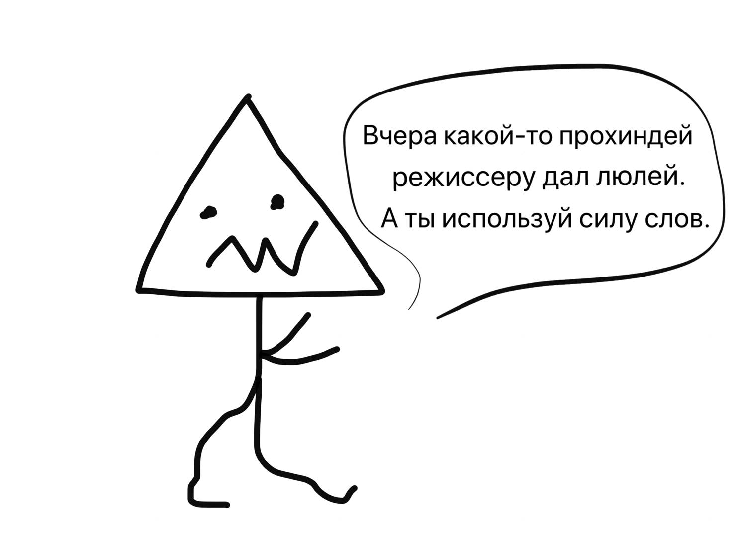 Так, внимание! Правила сегодняшней игры такие! Я выстреливаю себя в зал, в самом начале полета резко меняю траекторию, ношусь над рядами, сшибаю ваши тупорылые головы, аккуратно возвращаюсь в пушку – и занавес! Поняли, блядь?
