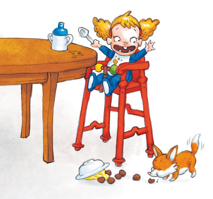 – Та-та, уааа – бум! – закричала Малышка и стукнула ложкой по тарелке, так что еда разлетелась во все стороны.