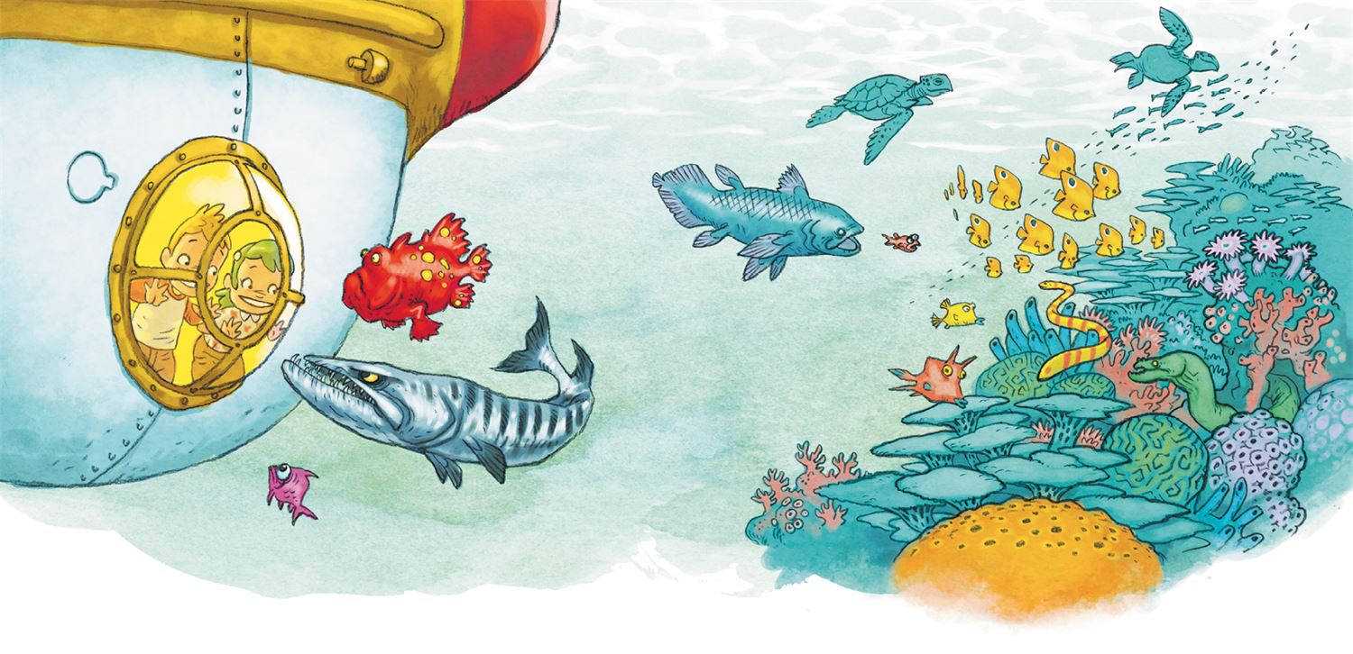 Маркус и Марианна бросились к иллюминаторам. Они видели много разных рыб: красивых и безобразных, больших и маленьких, рыб всех цветов радуги.