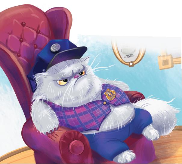 Не тут-то было. На крыльце выросла монументальная фигура капитана Снежа. Его белая шерсть блестела на солнце, капитанский значок был приколот к клетчатому жилету – Снеж, в отличие от остальных котов, носил самый настоящий жилет. Мурмяу это всегда удивляло. Ладно шляпу, ладно галстук… Но жилет! Говорят, Снежу его шили на заказ в столице. Полицейские коты распускали слух, что на самом деле капитан купил его в собачьем городе у ротвейлера, – больше такого громадного размера нигде не найти.