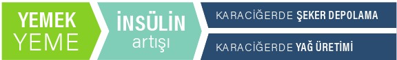 1. Beslenme: Aldığımız besinin emilimi esnasında kan şekeri düzeyi yükselir ve bunun sonucunda besini enerji olarak kullanan hücrelere glikozu taşımak için insülin düzeyi de artar. Fazla glikoz ya glikojen olarak karaciğerde depolanır ya da yağa dönüştürülür.