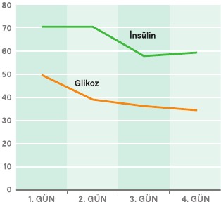 Şekil 1.3. Dört günden uzun süren oruç, insülin ve kan şekeri düzeylerini düşürür.