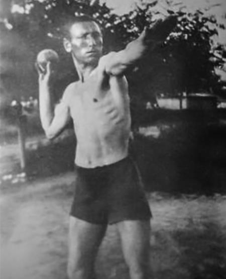 С.С. Бирюзов на соревнованиях по лёгкой атлетике – толкание ядра