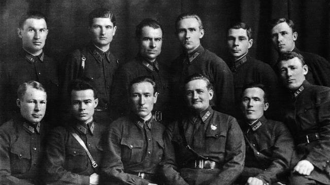 Слушатели Военной академии имени М.В. Фрунзе. Третий слева в первом ряду – С.С. Бирюзов. Москва, 1936 г.