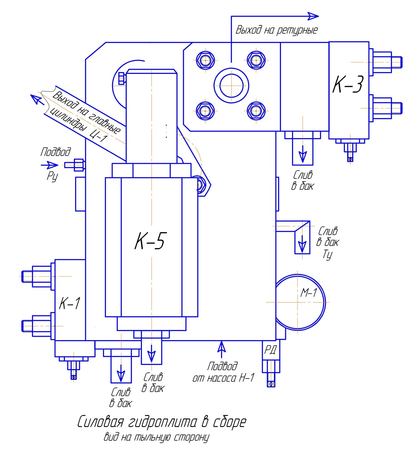 Все силовые гидроэлементы закреплены и гидравлически соединены между собой с помощью силовой гидроплиты ( СГП ). Силовая гидроплита – основа конструкции и ее опишем подробно.