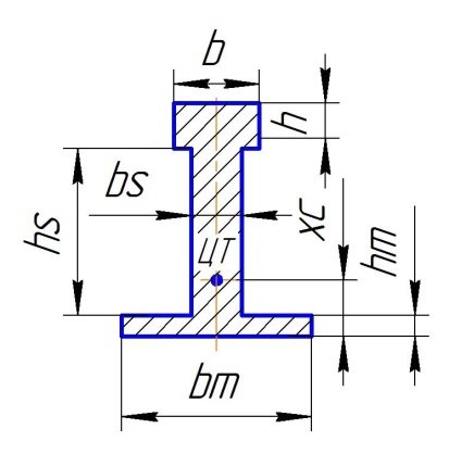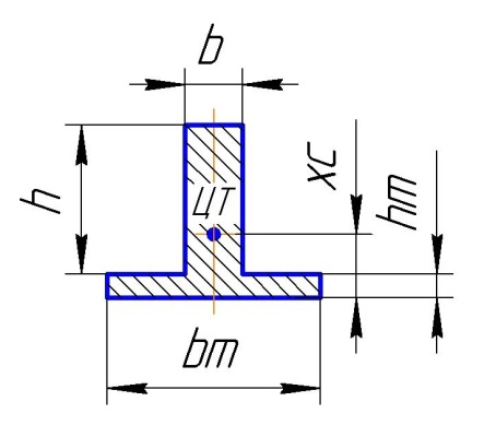 .s=(h*b)+(hm*bm)… Площадь сечения тавра.