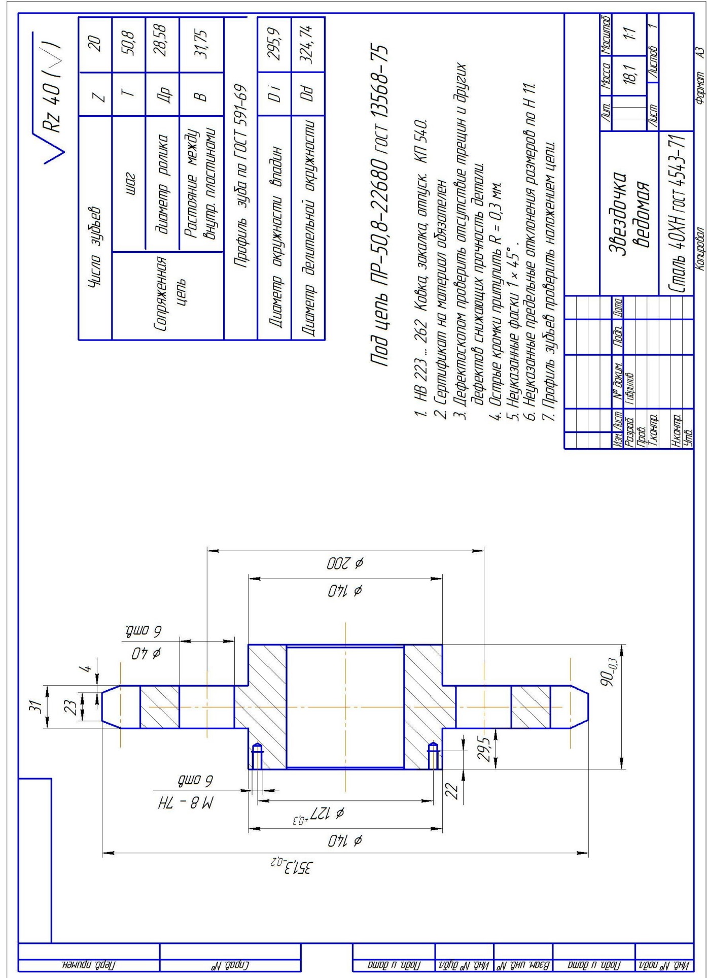 Чертеж приведен для примера. Важно добавить в тех.условиях « Профиль зуба проверить наложением цепи. ».