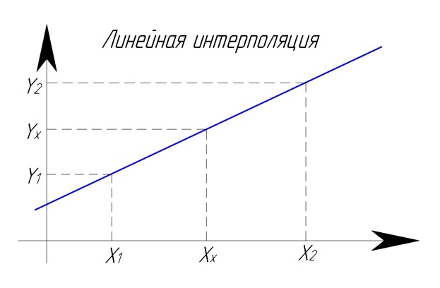 Необходимо вычислить ординату при значении абсциссы близком взятой из таблицы пары абсцисс.