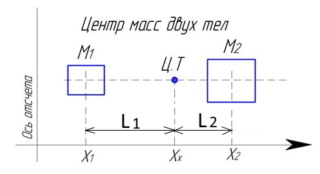 Рассчитываем как моменты масс относительно Оси отсчета Хх.
