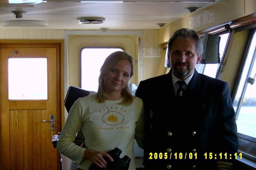 С дочкой Сашей на мостике т/х «Механик Ярцев»