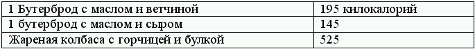 Сравнить калорийность любимых блюд с калорийностью блюд, от которых не толстеют.