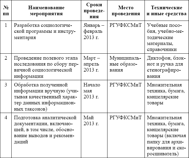 План подготовки, организации и проведения такого социологического исследования имеет следующий вид (табл. 3).