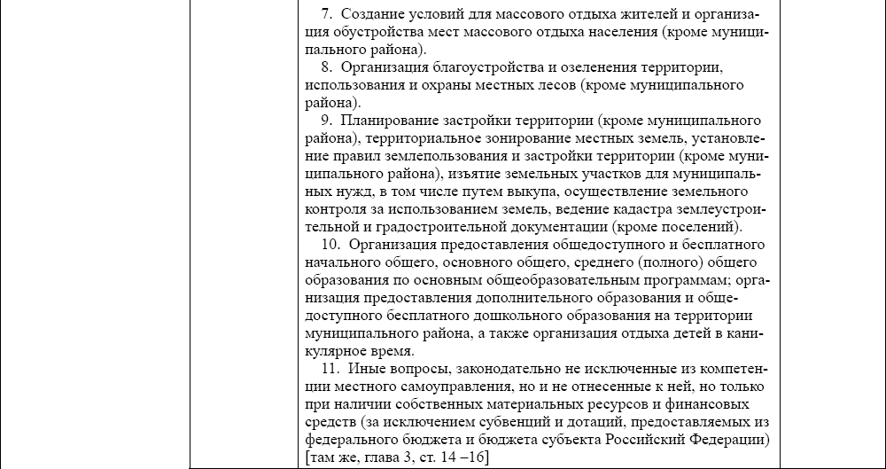 – генеральной (охватывающей все, что входит в компетенцию органов местного самоуправления);