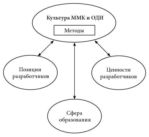 Как видно, связывание наших ценностей и наших позиций идет двумя основными путями: через принадлежность к одной культуре (ММК и ОДИ) и через обращение пусть и к предельно широкому, но мыслимому в качестве единого, материалу (образование и обучение). Этим определяется центральная ценность – ценность методологизации.