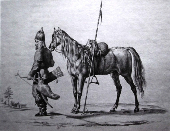 Башкирский воин. Карандашный рис. А. Орловского. Перв. четв. 19 в. Государственный исторический музей (ГИМ). Фотокопия из Архива УНЦ РАН.