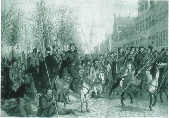 К концу февраля русская армия широким фронтом вышла к Одеру. За два месяца боевых действий она смогла продвинуться от Немана до Одера на глубину 800 км, что вызывает восхищение даже в скоростном 21-ом веке. «Дабы не оставлять неприятеля в покое в течение сего времени, – писал Кутузов, – нужно устроить более легких партий для партизанов, которые бы, перейдя Одер, нанесли бы страх неприятелю не только в окрестностях Берлина, но и до самой Эльбы»65. Участник похода 1813—1814 гг. русский генерал Андрей Раевский в своих воспоминаниях рассказывает, что при отступлении Наполеон распространял слухи среди немецкого населения, что башкиры «варвары» и что «они питаются неприятелями, и особенно охотники до детей». «По сказаниям Наполеона, продолжает генерал Раевский, – они (жители Лигницы – авт.) ожидали видеть диких варваров», и, к удивлению, встречают приветливых, добрых воинов»66.