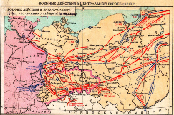 Карта военных действий в 1813 году. Всемирная история. М.: АН СССР, ИСЭЛ. 1959. Т.6.