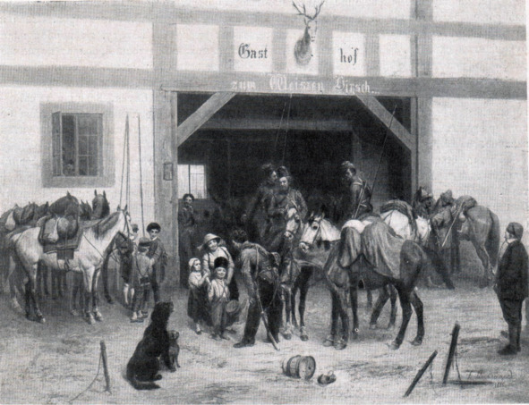 Казаки в Бауцене, в Саксонии в 1813 году. Худ. Виллевальде В. П. 1885 гг.