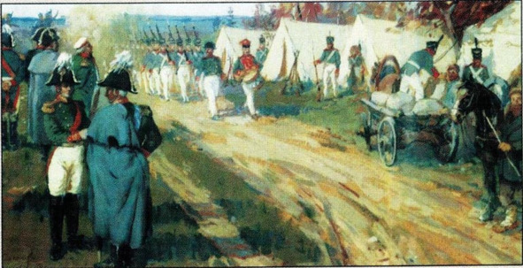 Тарутинский лагерь. Худ. А. Соколов, А. Семенов. 1958 г.