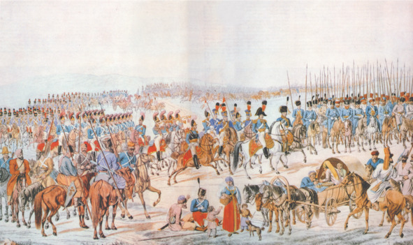 Чуть позже, 21 июля (2 августа) М. Б. Барклай де Толли сформировал «летучий корпус» генерала Ф. Ф. Винцингероде. По приказу Тормасова генерал Ф. Ф. Эртель 16 (28) августа выслал к Пинску отряд ген. А. В. Запольского, чтобы «тревожить неприятеля с тылу». Генерал П. Х. Витгенштейн направил 20 августа (1 сент.) к Дриссе отряд полковника М. И. Родионова 2-го, а 29 августа (10 сент.) – отряд подполковника Непейцына24. Напомним, что с июня месяца в подчинении Тормасова в 3-й армии находился 2-й Башкирский казачий полк, под началом Барклая де Толли в 1-й армии – 1-й Тептярский полк. А у Витгенштейна служили 3, 4 и 5 Башкирские казачьи полки. 2-я Западная армия Багратиона, где воевал 1-й Башкирский полк (в летучем казачьем корпусе Платова), в начальный период войны до Смоленска, вся вынуждена была действовать, как один большой партизанский корпус.