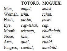 My knowledge of the Totoro is obtained from an anonymous notice published by a missionary in the Revue de Linguistique, July, 1879. Its relationship to the group is at once seen by the following comparison: