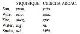 “La lingua Muysca, detta anticamente Chybcha, era la comune e generale in tuttigl’ Indiani di quella Monarchia.” Coleti, Dizionario Storico-Geografico dell’ America Meridionale, Tom. II., p. 39. (Venezia, 1771.)