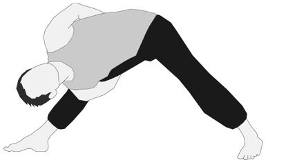 Бегун (в отличие от позы воина) – вытяжение вверх в широком шаге, пятка вверх