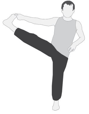 РИС. 36. Баланс на ноге с захватом голени в подмышке и руками в замке за спиной * * *