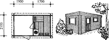 Сооружение бани требует сознательного и основательно обдуманного проектирования. Затраты на одну стену, предназначенную для блочного строительства, используемую для интерьеров, например, в 1,5–2 раза выше по сравнению с затратами на теплоизолированные помещения с деревянной обшивкой или стены, возводимые при каркасном методе строительства. Это необходимо иметь в виду уже на стадии проектирования. В случае строительства отдельно стоящих саун (рис.62) наиболее удобным является блочный метод, однако нельзя исключать и панельное решение, которое применяется для полносборных деревянных домов. Такие дома изготавливаются из предварительно обработанных деревянных элементов, соединяющихся при помощи канавочных шипов и бревенчатой вязки, струн или плотничных скоб.
