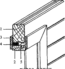 1 – бревенчатая стена; 2 – дверная коробка; 3 – наличник; 4 – деформационно-расширительный зазор, заполненный пенно-губчатой полосой.