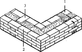 Рис. 25. Облегченная кладка: 1 – внутренняя стенка; 2 – наружная стенка; 3 —диафрагма.