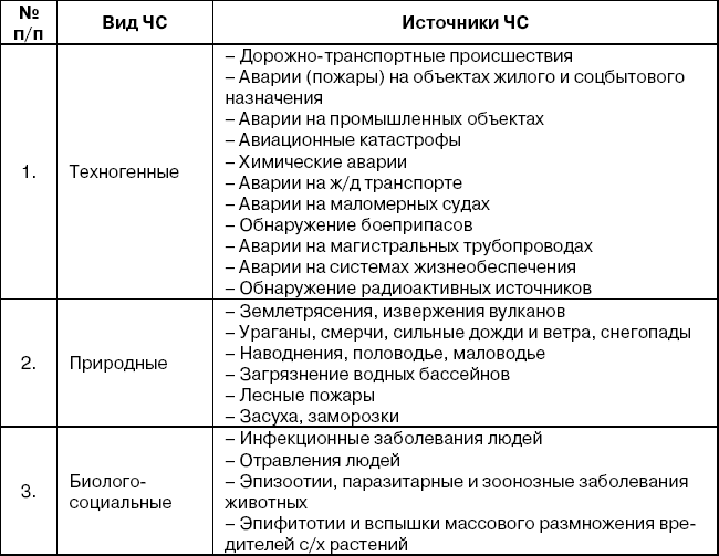 В государственных докладах о состоянии защиты населения и территорий Российской Федерации от чрезвычайных ситуаций используются в основном один тип классификации – по источникам их возникновения.