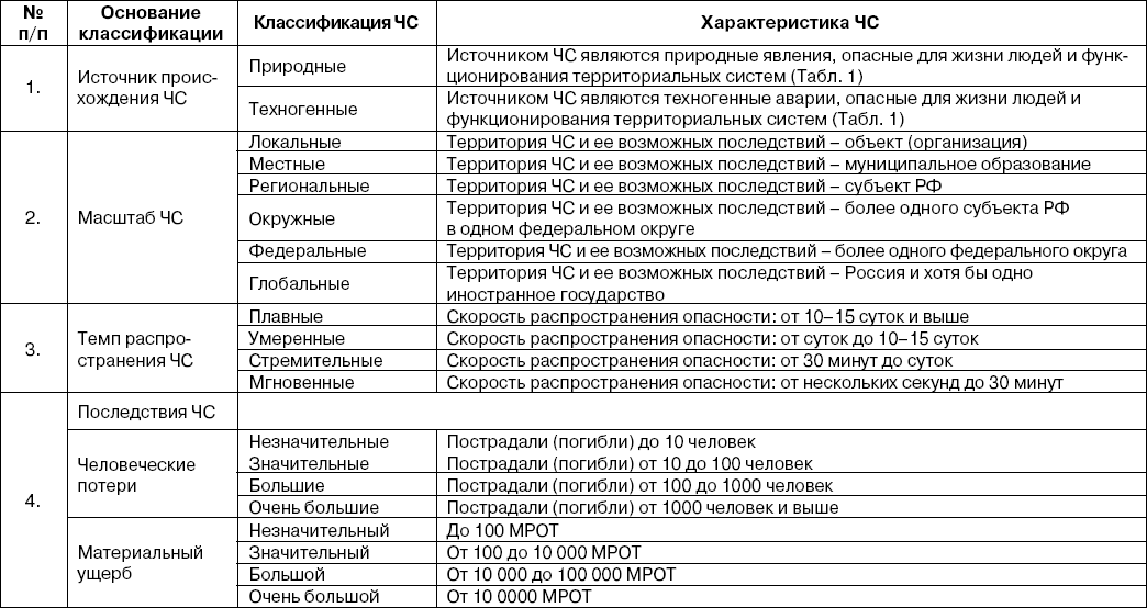 Безусловно, минусом данной классификации является ее масштабность, однако при этом она учитывает наиболее важные факторы чрезвычайной ситуации, такие, как источник и масштабы, темпы распространения и последствия, которые необходимо учитывать при принятии управленческих решений.